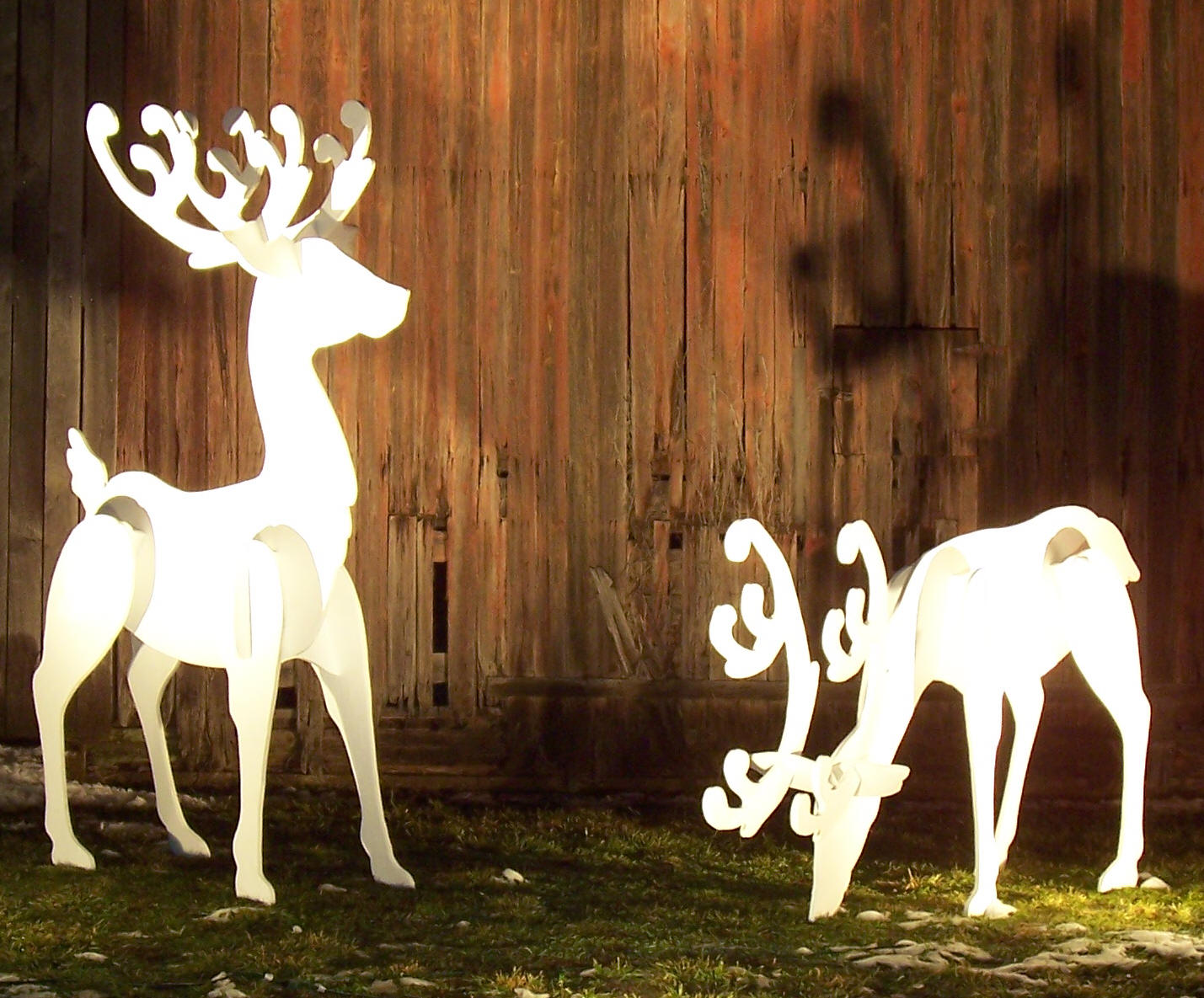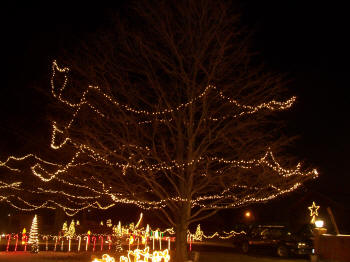 Then you have the many folks who have taken to the dancing lights theme. These can get pretty extravagant and time consuming when you figure having to set these lights in time with music. With special wiring needs and computer software requirements these can become quite an investment to begin with. Special programming and a miniature broadcasting system allows the viewers to sit in their car with their radio tuned to a specific station and take in the sounds of the light show. Some folks have almost nothing but plastic figures such as snowmen, candles, elves, Santa's, well you know what I mean. You can go on and on with this idea. After seeing 12 different Santa's spread out in a yard you get the feeling there was a loss of thought. There are many other ways to spread the cheer. Of course there are the displays that I enjoy the most, lights and lots of them. Many people who go light hunting seem to enjoy finding homes with tons of lights without all the motion. These displays are also the easiest to photograph since lights in motion are hard to capture in a picture. Just as the camera flashes the lights are apt to go off as they twinkle. Many times you end up with a picture of dark holes where the lights are but they had just twinkled. With a display of silent, steady lights your photos show others exactly what you see. When we go light hunting we enjoy pulling off the road and just observing other displays in beautiful silence. It is not uncommon for us to see several cars each night pull over in front of our display and sit. Before long we notice the distinct flash of a camera coming from inside the car. Having someone take photos of your displays tells you that you have done a good enough job that folks want to share the beauty with others. One of the neat things about big Christmas displays is coming up with new ideas. Sticking lights on everything in sight, hanging wreaths in every window and putting plastic snowmen and blow-up Santa’s, reindeer and the like everywhere seems to get old over time and folks won’t keep coming back to see the “same old same old” year after year. It is more entertaining for them to come out and see what’s new. Along with the new Nativity we erected in 2009 we also added a new set of reindeer. These plywood cut outs stand up to nine feet tall and with a good set of spotlights really set off the yard. Assembly is the same slot “a” in tab ”b” system as seen in thousands of the smaller versions that dot front yards this time of year. A set of deer like this requires four full sheets of plywood and several hours of cutting, sanding and painting. The end result is a display that is guaranteed to slow traffic as many like to get a good glimpse of the marvelous giants. If you really want to be creative, try designing your own decorations and build them from scratch. The twenty wooden Candy Canes lining our drive where made from plywood. Three layers were cut from 3/4" plywood and sandwiched together. The middle layer had a 3/4" gap cur into it so when the outer layers were applied the was a hollow spot for the cane to drop over a length of re-bar that was driven into the ground. add some red and white paint and you have a nice looking, as well as sturdy, decoration. The eight foot star on our big barn was constructed from five eight foot long 2X4's painted white and wrapped with three strands of lights. These are simple items to make but add a new dimension to your display. If you can't make your own display, then where to buy from is something to think about. Wal-Mart, Lowes and Home Depot have some things, but it seems to stay repetitious. Lights, wreaths and garland can go far, but you are always left with wanting more. For some of our displays we have bought from The Winfield Collection. Their patterns give you every detail you need and you are never left second guessing. Another good place that I have heard of is Bronner's. Although I have never bought from them, they are on my list of places to check out. Wal-Mart has a lot of different items and much of the common items in our display are from there. We generally go to Wal-Mart about a week after Christmas when the prices are slashed 75%. when you can buy lights for seventy-five cents a box and store them you will realize it isn't as expensive to decorate as you think. At that price I have found that if a half strand of lights go out and the problem isn't clearly obvious, such as a broken bulb, I pitch the entire strand and get a new one off my storage shelf. I keep about a hundred spare strands on hand just for this purpose. We also buy a lot of their indoor trees for prices between $8.00 and $15.00 on sale. The are pre-lit with 400-500 lights. We set these up throughout the yard by slipping them over a 1/2" piece of rebar they look good in a yard and can quickly add to the light count. at the end of the season we simply put the tree stand on them and store them fully open in our hay loft. Of course many folks don't have a place like that so you may have to disassemble yours and put it back in the original package. No matter the type display you decide to create, have a good plan ready and have at it. Somebody is going to have a look. ‘Tis the season! So put on your thinking cap and enjoy it!