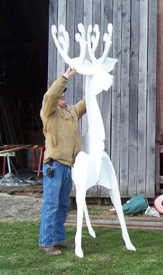 Then you have the many folks who have taken to the dancing lights theme. These can get pretty extravagant and time consuming when you figure having to set these lights in time with music. With special wiring needs and computer software requirements these can become quite an investment to begin with. Special programming and a miniature broadcasting system allows the viewers to sit in their car with their radio tuned to a specific station and take in the sounds of the light show. Some folks have almost nothing but plastic figures such as snowmen, candles, elves, Santa's, well you know what I mean. You can go on and on with this idea. After seeing 12 different Santa's spread out in a yard you get the feeling there was a loss of thought. There are many other ways to spread the cheer. Of course there are the displays that I enjoy the most, lights and lots of them. Many people who go light hunting seem to enjoy finding homes with tons of lights without all the motion. These displays are also the easiest to photograph since lights in motion are hard to capture in a picture. Just as the camera flashes the lights are apt to go off as they twinkle. Many times you end up with a picture of dark holes where the lights are but they had just twinkled. With a display of silent, steady lights your photos show others exactly what you see. When we go light hunting we enjoy pulling off the road and just observing other displays in beautiful silence. It is not uncommon for us to see several cars each night pull over in front of our display and sit. Before long we notice the distinct flash of a camera coming from inside the car. Having someone take photos of your displays tells you that you have done a good enough job that folks want to share the beauty with others. One of the neat things about big Christmas displays is coming up with new ideas. Sticking lights on everything in sight, hanging wreaths in every window and putting plastic snowmen and blow-up Santa’s, reindeer and the like everywhere seems to get old over time and folks won’t keep coming back to see the “same old same old” year after year. It is more entertaining for them to come out and see what’s new. Along with the new Nativity we erected in 2009 we also added a new set of reindeer. These plywood cut outs stand up to nine feet tall and with a good set of spotlights really set off the yard. Assembly is the same slot “a” in tab ”b” system as seen in thousands of the smaller versions that dot front yards this time of year. A set of deer like this requires four full sheets of plywood and several hours of cutting, sanding and painting. The end result is a display that is guaranteed to slow traffic as many like to get a good glimpse of the marvelous giants. If you really want to be creative, try designing your own decorations and build them from scratch. The twenty wooden Candy Canes lining our drive where made from plywood. Three layers were cut from 3/4" plywood and sandwiched together. The middle layer had a 3/4" gap cur into it so when the outer layers were applied the was a hollow spot for the cane to drop over a length of re-bar that was driven into the ground. add some red and white paint and you have a nice looking, as well as sturdy, decoration. The eight foot star on our big barn was constructed from five eight foot long 2X4's painted white and wrapped with three strands of lights. These are simple items to make but add a new dimension to your display. If you can't make your own display, then where to buy from is something to think about. Wal-Mart, Lowes and Home Depot have some things, but it seems to stay repetitious. Lights, wreaths and garland can go far, but you are always left with wanting more. For some of our displays we have bought from The Winfield Collection. Their patterns give you every detail you need and you are never left second guessing. Another good place that I have heard of is Bronner's. Although I have never bought from them, they are on my list of places to check out. Wal-Mart has a lot of different items and much of the common items in our display are from there. We generally go to Wal-Mart about a week after Christmas when the prices are slashed 75%. when you can buy lights for seventy-five cents a box and store them you will realize it isn't as expensive to decorate as you think. At that price I have found that if a half strand of lights go out and the problem isn't clearly obvious, such as a broken bulb, I pitch the entire strand and get a new one off my storage shelf. I keep about a hundred spare strands on hand just for this purpose. We also buy a lot of their indoor trees for prices between $8.00 and $15.00 on sale. The are pre-lit with 400-500 lights. We set these up throughout the yard by slipping them over a 1/2" piece of rebar they look good in a yard and can quickly add to the light count. at the end of the season we simply put the tree stand on them and store them fully open in our hay loft. Of course many folks don't have a place like that so you may have to disassemble yours and put it back in the original package. No matter the type display you decide to create, have a good plan ready and have at it. Somebody is going to have a look. ‘Tis the season! So put on your thinking cap and enjoy it!